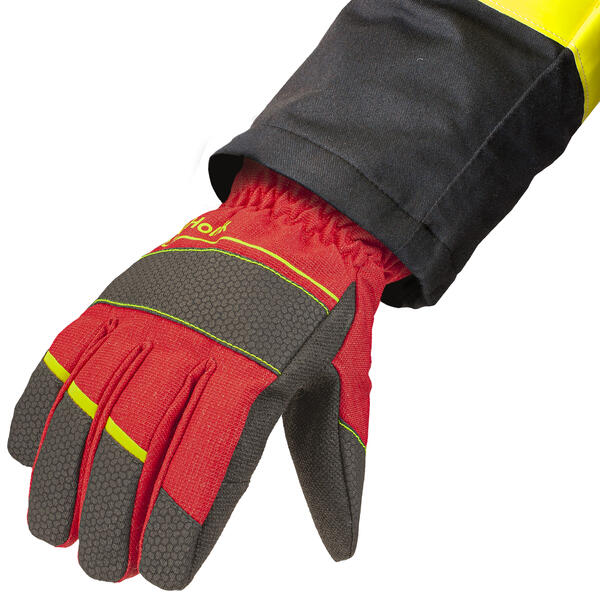 Zásahová rukavice kombinující materiály Nomex®, aramidový úplet a FR membránu Porelle®. Naše patentovaná technologie HiPro mimořádným způsobem chrání hřbet ruky před tepelnými riziky a zároveň poskytuje celoplošnou ochranu proti úderu.
