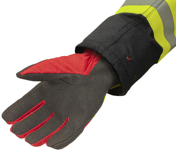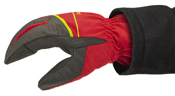 Zásahová rukavice s propracovaným systémem výztuh pro lepší mechanickou a tepelnou odolnost. Na exponovaných místech je navíc nosná nomexová tkanina opatřena keramickým povrstvením pro vyšší odolnost proti oděru.