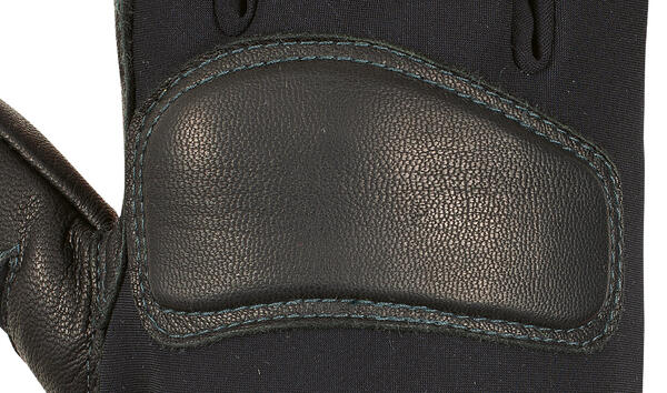 - Speciální konstrukce ukazováku s přetaženým švem na hřbetní stranu pro citlivější ovládání zbraně a delší životnost rukavice.