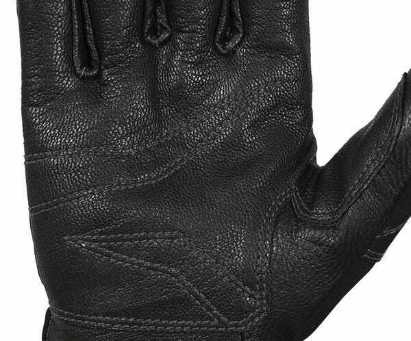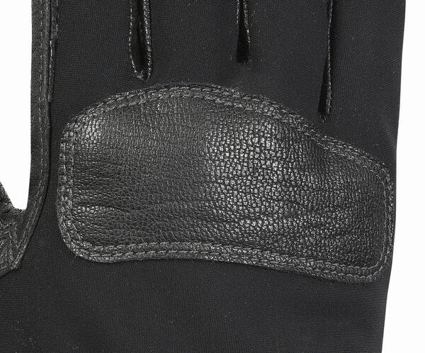- Dlaň včetně části prstů a palce – výztuha z kozinové usně.