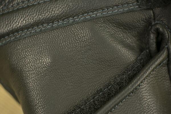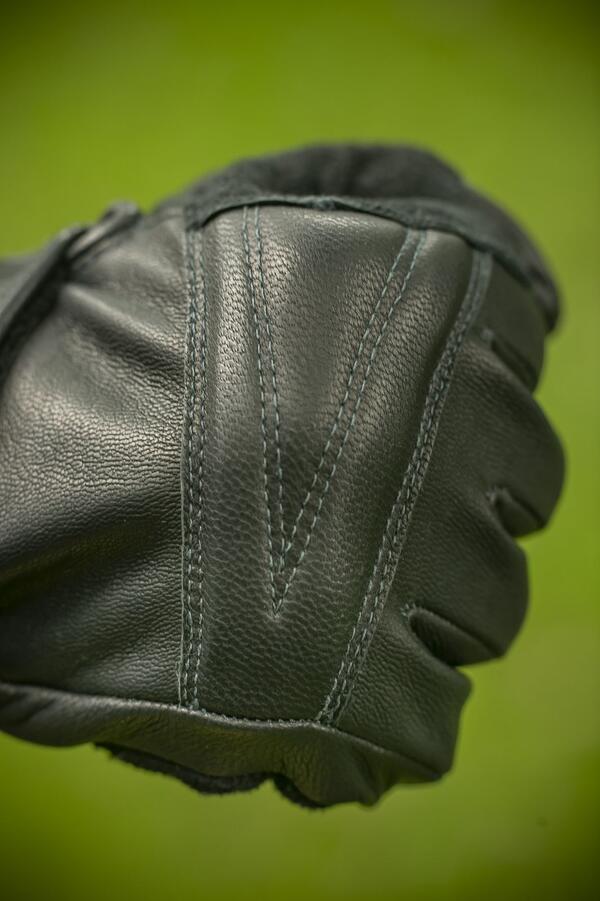 - Výztuha z kozinkové usně s protiúderovou výplní – ochrana kloubů na hřbetu ruky.